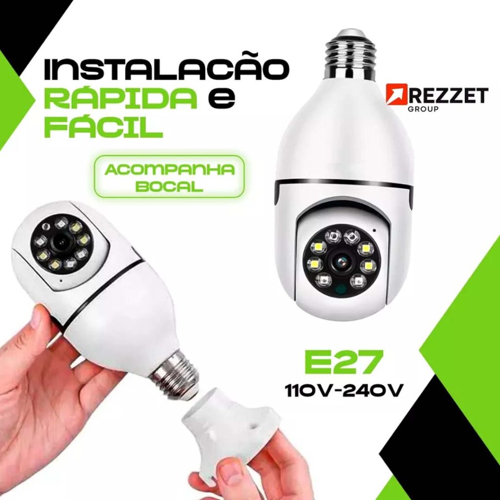 Câmera De Segurança Lâmpada, Wifi, Com Visão Noturna, Interna e Externa